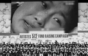 全體藝人手牽手一起呼吁為災(zāi)區(qū)賑災(zāi)捐款。