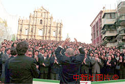 【中新社澳門十二月九日電】回歸特寫:相聚大三巴,向澳門告別 中新社記者 田惠明 王曉暉 因為即將來到的別離,澳門總督韋奇立和澳葡政府的全體官員今日下午,夕陽之時相聚在大三巴。 大三巴有三百多年歷史,其間曾三次被火災(zāi)襲擊,而後,殘留的一片前壁被修復(fù)保留至今。 今天,在大三巴前的七十級臺階上,在夕陽余暉之下,站滿了澳葡政府五百多名官員。葡萄牙駐澳門的最後一位總督韋奇立站在了最前排。這是一張最後的“全家!。 上百名記者記錄下這一歷史鏡頭。合影之後,韋奇立回身,向和他共事了八年的官員們做了一個很特別的手勢:雙手高舉,并豎起了大拇指。他的手勢引起一片掌聲。然後,韋奇立先生拾級而上,走過他下屬的身邊,走向舉目可見的大炮臺。 三個月前,何厚鏵先生在大三巴前放飛白鴿。那是一九九九年九月九日,澳門各界迎回歸倒計時一百天系列活動拉開序幕。今天,韋奇立先生在大三巴前微笑留影,標(biāo)志著澳葡政府告別儀式正式展開。 據(jù)知,在今後十一天中,澳葡政府還有一系列告別活動。向大三巴告別,向大炮臺告別,向澳葡政府官員告別,是韋奇立先生告別澳門,告別這一段歷史的第一次揮手。 大炮臺相距大三巴不遠(yuǎn)。大炮臺的高墻內(nèi),榕樹依依,綠草茵茵。韋奇立和澳葡政府官員的聚會就在這里舉行。韋奇立的巨幅照片做成的標(biāo)志牌立在聚會會場的門囗,草坪上,軍樂隊的進(jìn)行曲正奏得激越。 這時,有媒體記者要求采訪韋奇立,但韋奇立擺擺手,拒絕了他。然後又似乎想起什么,回過頭,向那位記者歉然地微笑了一下。 韋奇立先生的表情模糊,顯然心緒復(fù)雜,他在澳門黃昏的美麗中說:今天,是對澳門過去的總結(jié),將要來臨的是一個新時代。他還提到何厚鏵,稱他年輕能干,是澳門人的驕傲,會繼續(xù)推進(jìn)澳門的進(jìn)步。 澳葡政府行政及公職司李麗如女士代表澳葡政府官員講話,她說澳門公共行政的所有領(lǐng)導(dǎo)及主管公認(rèn)總督先生是一位卓越的政治家。 她說,因為他的領(lǐng)導(dǎo)才能十分卓越,并懂得如何排除萬難,把澳門這葉扁舟順利駛向目的之港。 回歸日近的澳門,滿眼開的都是荷花,到處飛的都是燕子,回歸的字樣歲處可見。天氣預(yù)報顯示:澳門天氣晴好,一片陽光燦爛。(完) |